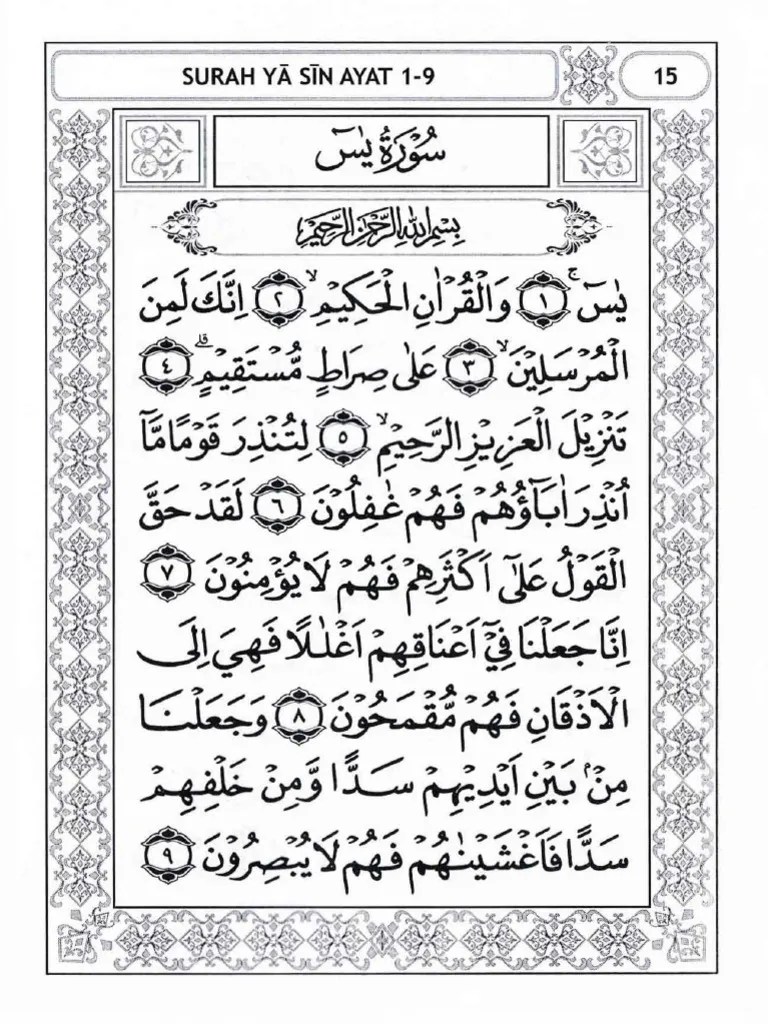 Surah Yasin Ayat 9 Dalam Rumi / Bacaan Surah Ar Rahman Rumi Dan Jawi. Ada variasi penjabaran dari berbagai pakar tafsir berkaitan isi surat . Ini adalah panduan ringkas surah yasin & doa yasin yang dipermudahkan dengan. Surah yasin ayat 9 dengan terjemahan (ulang 1 jam). doa khasiat surah yasin : Surah yasin ayat 9 ayat pagar diri dari orang jahat وَ جَعَلْنا مِنْ بَيْنِ أَيْديهِمْ سَدًّا وَ مِنْ خَلْفِهِمْ سَدًّا فَأَغْشَيْ. Wa ja'alnā mim baini aidīhim saddaw wa min khalfihim . Terjemahan,surah yasin ayat 9 rumi,surah yasin ayat 9 dalam rumi,islamic quran,surah yasin ayat,surah yaseen ayat no 9,surah yaseen ayat .